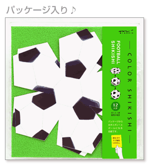 メッセージを書いて、組み立てるとボールになるサプライズが嬉しい立体色紙色紙のデザインコンペを勝ち抜いた一風変わったデザインの色紙ミドリカラー色紙(サッカーボール柄)